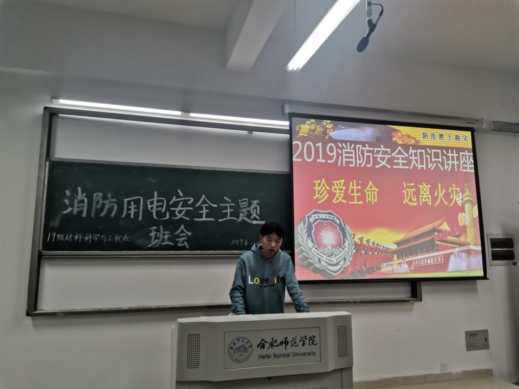 为迎接11月9日国家消防日,加强大学生消防安全意识,规范学生宿舍用电行为,全力打造安全校园,11月7日晚,威廉希尔足球指数网在滨湖新区博学楼举行“119消防安全”主题班会。会议由各班生活委员和安全委员共同主持,辅导员韩翔老师及2019级全体学生参加此次班会。