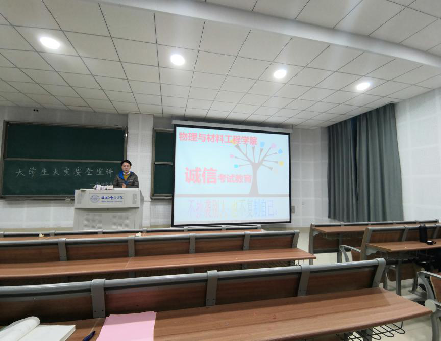 召开诚信教育主题班会,加强制度规范。学院结合实际情况,以班级为单位,广泛开展诚信考试主题班会,向学生普及宣传《国家教育考试违规处理办法》、《合肥师范学院学生考试违规处理办法》等考纪考规相关规定,向同学们强调诚信考试的重要性,让广大学生全面了解参与考试作弊的危害性和严重后果,督促同学们从思想深入高度重视诚信考试,自觉抵制违纪作弊行为。