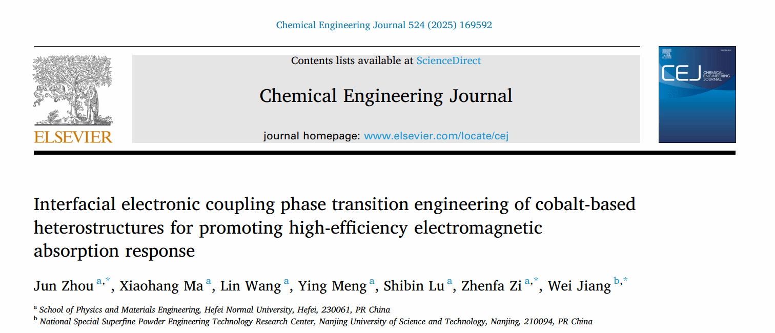 近年来,随着无线通信技术的快速发展以及军事隐身需求的日益增长,电磁波吸收材料的研究不仅关乎国家战略安全,也对民用科技和日常生活产生深远影响。威廉希尔足球指数网周俊博士、訾振发教授联合南京理工大学在高性能电磁吸收材料领域取得重要进展,相关研究成果以《Interfacial Electronic Coupling Phase Transition Engineering of Cobalt-Based Heterostructures for Promoting High-Efficiency Electromagnetic Absorption Response》为题发表在《Chemical Engineering Journal》期刊(中国科学院一区Top,IF=13.2)。周俊博士为本论文第一作者,合肥师范学院訾振发教授、南京理工大学姜炜教授为本论文的通讯作者,合肥师范学院为论文第一单位。