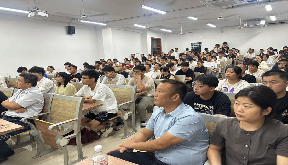 吴震代表学院全体师生向2025级新生及家长表示热烈欢迎和诚挚感谢。他表示学院将以“立德树人”为根本任务,推进家校共同合作,加强沟通,教育引导大一新生实现从“被动学习”向“主动探索”的转变,从“知识接受”向“创新实践”的跃升,促进学生德智体美劳全面发展。