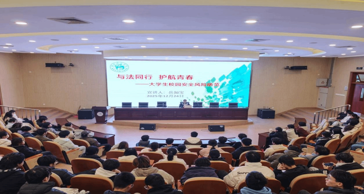 为增强学生法治观念与安全防范意识,筑牢校园安全防护网,12月24日,威廉希尔足球指数网在学术报告厅举办“与法同行 护航青春——大学生校园安全防范”主题普法宣讲活动。本次活动由学院特邀具有丰富法律知识与实务经验的辅导员岳加宝老师担任主讲,滨湖校区各年级各班学生代表参加。